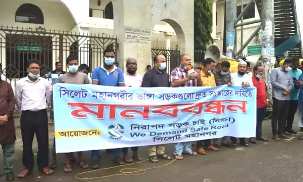 সিলেট নগরের আম্বরখানা-টিলাগড়, শিবগঞ্জ-টিলাগড়, পাঠানটুলা, কদমতলীসহ নগরের সব ভাঙা সড়ক দ্রুত সংস্কারের দাবি জানিয়েছে নিরাপদ সড়ক চাই (নিসচা) সিলেট মহানগর। আগামী ১০ দিনের মধ্যে এসব সড়ক সংস্কারের আল্টিমেটাম দিয়েছে সংগঠনটি। তা না হলে কঠোর আন্দোলেনে নামা হবে বলে জানিয়েছে সংগঠনটি।