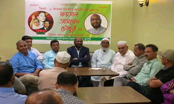 সিলেট জেলা বিএনপি নেতা ও সাবেক ছাত্রনেতা ফয়সল আহমদ চৌধুরী বলেছেন, বাংলাদেশের গণতন্ত্র এক ভঙ্গুর অবস্থায় দণ্ডায়মান। দেশ এক গভীর রাজনৈতিক সংকটে নিমজ্জিত, বিএনপি এবং গণতন্ত্র নস্যাৎ হলে দেশ এক ভয়াবহ অবস্থার মধ্যে পড়বে। তাই সব প্রবাসীদেরকে ঐক্যবদ্ধ করতে হবে। সবাই মিলে গণতন্ত্রকে রক্ষা করতে হবে।