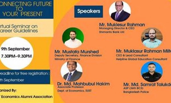 শাহজালাল বিজ্ঞান ও প্রযুক্তি বিশ্ববিদ্যালয়ে ( শাবিপ্রবি) অর্থনীতি বিভাগ এলামনাই এসোসিয়েশনের উদ্যোগে ক্যারিয়ার বিষয়ক সেমিনার অনুষ্ঠিত হয়েছে।