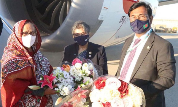 জাতিসংঘের ৭৬তম অধিবেশনে যোগ দিতে যুক্তরাষ্ট্রের নিউইয়র্ক পৌঁছেছেন প্রধানমন্ত্রী শেখ হাসিনা। রবিবার (১৯ সেপ্টেম্বর) স্থানীয় সময় বিকেল সাড়ে ৫টার দিকে প্রধানমন্ত্রীকে বহনকারী বিমান বাংলাদেশ এয়ারলাইন্সের ভিভিআইপি চার্টার্ড ফ্লাইট (বিজি-১৯০২) নিউইয়র্কের জন এফ কেনেডি আন্তর্জাতিক বিমানবন্দরে অবতরণ করে।