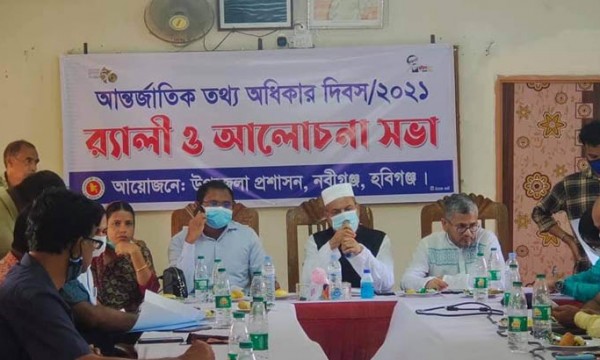 সারাদেশের ন্যায় হবিগঞ্জে নবীগঞ্জ উপজেলায় আন্তর্জাতিক তথ্য অধিকার দিবস উপলক্ষ্যে আলোচনা সভা অনুষ্ঠিত হয়েছে।
