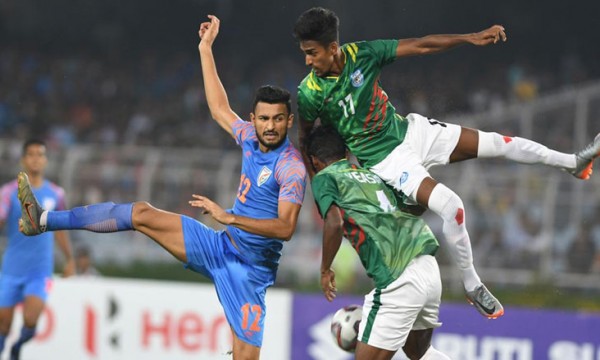 বরং দ্রুত আক্রমণে উঠে ২৬ মিনিটে ১-০ গোলে এগিয়ে যায় ভারত। উদন্ত সিংয়ের কাটব্যাক থেকে অভিজ্ঞ সুনীল ছেত্রী প্লেসিং করেছেন। ডিফেন্ডার তপু বর্মণ কাছে থেকে কিছুই করতে পারেননি। ৩৮ মিনিটে সুনীল ছেত্রী আবারও সুযোগ পেয়েছিলেন। কিন্তু ৩৭ বছর বয়সী স্ট্রাইকারের জোরালো শট পোস্ট ঘেঁষে চলে গেছে।