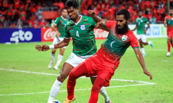 কিন্তু দ্বিতীয়ার্ধে মালদ্বীপকে আর ঠেকিয়ে রাখতে পারেনি বাংলাদেশ। দুটি গোল হজম করতে হয়েছে।