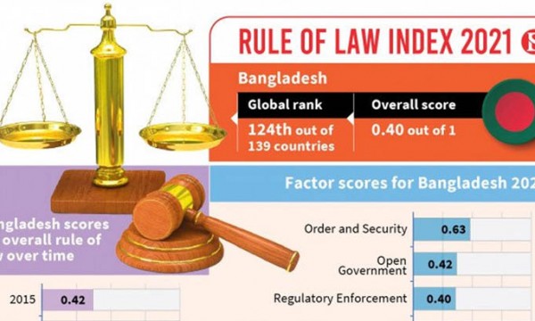 বিশ্বের ১৩৯ টি দেশের আইনশৃঙ্খলা পরিস্থিতি জরিপকারী আন্তর্জাতিক সংগঠন ওয়ার্ল্ড জাস্টিস প্রোজেক্টের (ডব্লিউজেহপি) ২০২১ সালের সূচকে এই তথ্য জানানো হয়েছে।