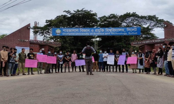 কুমিল্লাসহ দেশের বিভিন্ন স্থানে সাম্প্রদায়িক সহিংসতার প্রতিবাদে মানববন্ধন করেছে শাহজালাল বিজ্ঞান ও প্রযুক্তি বিশ্ববিদ্যালয়ের (শাবিপ্রবি) সাধারণ শিক্ষার্থীরা।