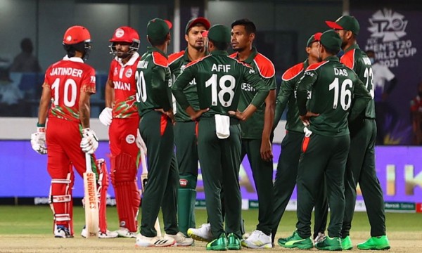 উড়ন্ত সূচনাই করেছিল ওমান। তাতে বিশ্বকাপের প্রথম পর্ব থেকে বিদায়ের শঙ্কাও বাড়ছিল পাল্লা দিয়ে। তবে শেষমেশ সে শঙ্কা উড়িয়ে দিয়েছে বাংলাদেশ। স্বাগতিক ওমানকে হারিয়েছে ২৬ রানে। বিশ্বকাপের সুপার টুয়েলভে খেলার আশাটাও বেঁচে থাকল তাতে।