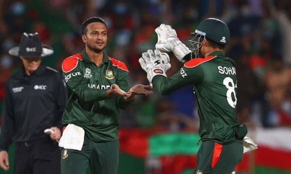 এর আগে, ব্যাট করতে এসে শুরুতেই হোঁচট খায় বাংলাদেশ। ইনিংসের দ্বিতীয় বলে ফেরেন ওপেনার নাঈম শেখ। তিনে এসে আরেক ওপেনার লিটন দাসকে নিয়ে শুরুর ধাক্কা সামলে তোলেন সাকিব। প্রথম পাওয়ার প্লেতে এক উইকেট হারিয়ে ৪৫ রান তোলে টাইগাররা। খানিক পরই আসাদ ভালার শিকার হয়ে ফেরেন লিটন। ২৩ বলে ২৯ রান করে ডিপ মিডউইকেটে সেসে বাউয়ের তালুবন্দি হন তিনি।