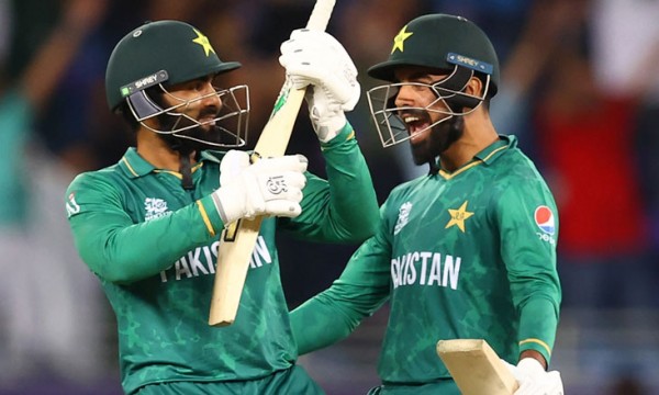 আফগানদের জবাব দিতে নেমে শুরুতে বেশ বিপাকে পড়ে পাকিস্তানও। ১০ বলে ৮ রান করে আউট হন মোহাম্মদ রিজওয়ান। তবে ফিফটি তুলে নেন বাবর আজম। ৪৭ বলে ৫১ রান করে রশিদ খানের বলে বোল্ড হন তিনি। ২৫ বলে ৩০ রান আসে ফখর জামানের ব্যাট থেকে।