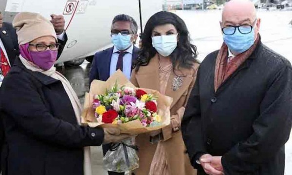 যুক্তরাজ্যে বাংলাদেশের হাইকমিশনার সাইদা মুনা তাসনিম বিমানবন্দরে প্রধানমন্ত্রীকে অভ্যর্থনা জানান।
