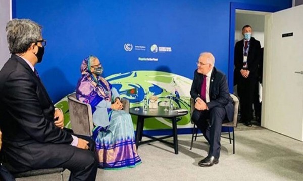 অস্ট্রেলিয়া জলবায়ু স্থিতিস্থাপকতা সৃষ্টি ও রোহিঙ্গা প্রত্যাবাসনে বাংলাদেশকে সাহায্য করতে আগ্রহ প্রকাশ করেছে। অস্ট্রেলিয়ার প্রধানমন্ত্রী স্কট মরিসন মঙ্গলবার (৩ নভেম্বর) কপ-২৬-এর সাইডলাইনে বাংলাদেশের প্রধানমন্ত্রী শেখ হাসিনার সঙ্গে দ্বিপক্ষীয় বৈঠকে এ আগ্রহ প্রকাশ করেন।