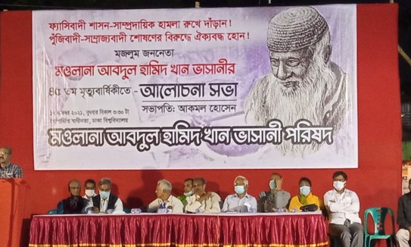 বুধবার (১৭ নভেম্বর) বিকাল সাড়ে তিনটায় ঢাকা বিশ্ববিদ্যালয়ের স্বোপার্জিত স্বাধীনতা ভাস্কর্যের সামনে মওলানা আবদুল হামিদ খান ভাসানীর ৪৫তম মৃত্যুবার্ষিকী উপলক্ষে মওলানা ভাসানী পরিষদ আয়োজিত আলোচনা সভায় উপস্থিত থেকে তিনি একথা বলেন।