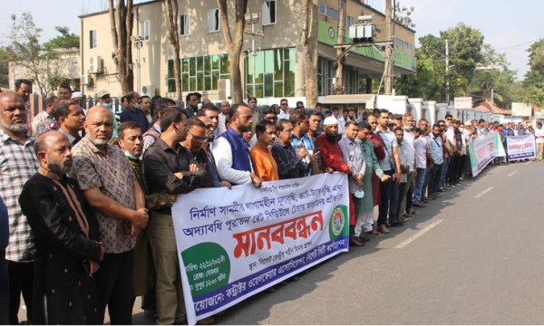 মানববন্ধনে বক্তারা, ২০১৮ সালের কাজের উপর ২০২১ সালে অবৈধভাবে ২ শতাংশ ট্যাক্স আদায়, ঠিকাদারদের কাছ থেকে প্রতিমাসে ভ্যাট রিটার্ন বন্ধ, ২০১৪ ও ২০১৮ সালের রেইট বন্ধ করে চলমান বাজার দর অনুসারে নতুন রেইটে টেন্ডার করার আহবান জানান।