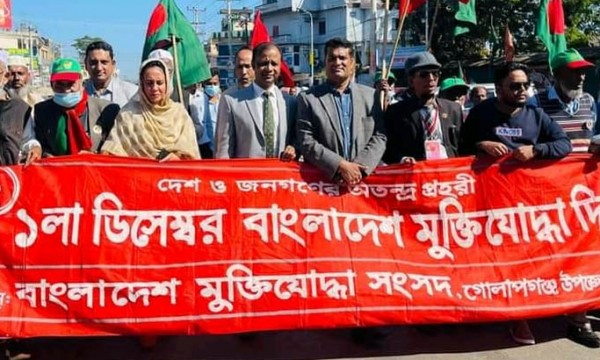 সিলেটের গোলাপগঞ্জে বাংলাদেশ মুক্তিযোদ্ধা দিবস উপলক্ষ্যে র্যালি ও আলোচনা সভা অনুষ্ঠিত হয়েছে। বুধবার (১ ডিসেম্বর) দুপুরে উপজেলা মুক্তিযোদ্ধা সংসদের উদ্যোগে গোলাপগঞ্জ চৌমুহনীতে র্যালী ও আলোচনা সভা অনুষ্ঠিত হয়। র্যালিটি উপজেলা মুক্তিযোদ্ধা সংসদ প্রাঙ্গণ থেকে শুরু হয়ে বিভিন্ন গুরুত্বপূর্ণ সড়ক প্রদক্ষিণ করে পুনরায় মুক্তিযোদ্ধা সংসদ প্রাঙ্গণে এসে শেষ হয়। পরে মুক্তিযোদ্ধা সংসদ প্রাঙ্গণে আলোচনা সভা অনুষ্ঠিত হয়।