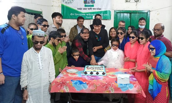 নাট্যমঞ্চ সিলেটের গৌরবের ৩১ বছর উপলক্ষেে আজ মঙ্গলবার (৭ ডিসেম্বর) জিন্দাবাজার গ্রীণ ডিজএ্যাবল ফাউন্ডেশন কার্যালয়ে দৃষ্টি প্রতিবন্ধী শিশুদের সাথে জন্মদিনের কেক কেটে, কবিতা-গানের অনুষ্ঠান আয়োজন করে সংগঠনটি।