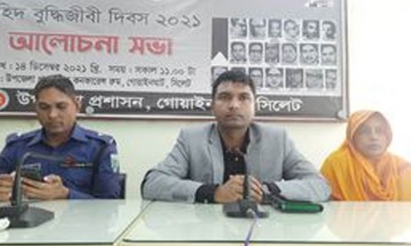 মঙ্গলবার (১৪ ডিসেম্বর) দুপুরে উপজেলা প্রশাসনিক কনফারেন্স হল রুমে শহীদ বুদ্ধিজীবি দিবস উপলক্ষে গোয়াইনঘাট উপজেলা নির্বাহী কর্মকর্তা (ইউএনও) মো. তামিলুর রহমানের সভাপতিত্বে ও সঞ্চালনায় এ আলোচনা সভা অনুষ্ঠিত হয় ।