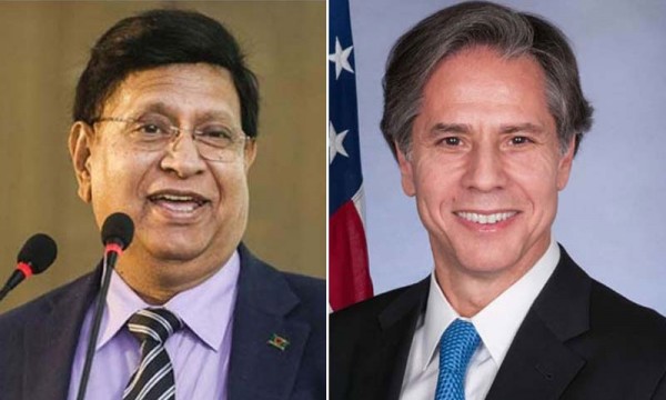 অ্যান্টনি ব্লিঙ্কেন (ডানে) ও ড. এ কে আব্দুল মোমেন (বাঁয়ে)