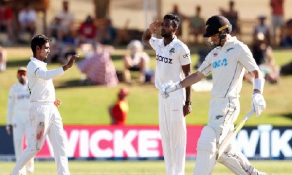 ইনিংস হার এড়ালেও স্বস্তিতে নেই কিউইরা। ১৩০ রানে পিছিয়ে থেকে দ্বিতীয় ইনিংস শুরু করা কিউইরা ৫ উইকেটে ১৪৭ রান নিয়ে চতুর্থ দিনের খেলা শেষ করেছে। বাংলাদেশের চেয়ে এখন তারা ১৭ রানে এগিয়ে, হাতে আছে আর মাত্র ৫টি উইকেট। রস টেলর ৩৭ ও রাচীন রবিন্দ্র ৬ রানে অপরাজিত আছেন।