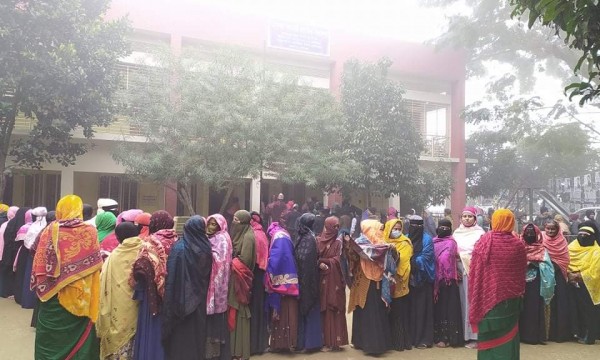 সকাল আটটায় ভোটগ্রহণ শুরু হলেও তার আগেই ভোর থেকে বিভিন্ন বয়সী নারী পুরুষ ভোটকেন্দ্রে লাইনে দাঁড়িয়ে অপেক্ষা করতে থাকেন। উৎসব মুখর ও শান্তিপূর্ণ পরিবেশে ভোট দিতে পেরে স্বস্তি প্রকাশ করেছেন ভোটাররা।
