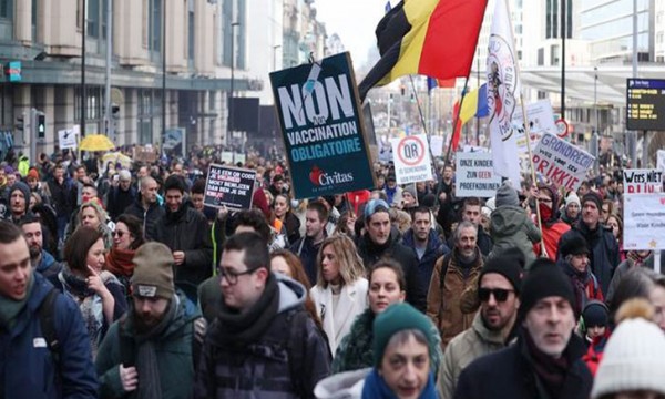 বেলজিয়ামের রাজধানী ব্রাসেলসে রোববার প্রায় গোটা দিন ধরেই প্রতিবাদ চলে। প্রায় পাঁচ হাজার মানুষ মাস্ক না পরে সেই প্রতিবাদসভায় অংশ নেন। তাদের হাতের পোস্টারে লেখা ছিল, টিকা নিয়ে বাড়াবাড়ি করা যাবে না। 'টিকা একনায়কতন্ত্র' বন্ধ করতে হবে।