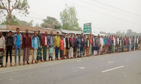 আজ শুক্রবার (২১ জানুয়ারি) বিকাল ৩ টায় শান্তিগঞ্জ উপজেলার জয়কলস ইউনিয়নের সদরপুর পয়েন্টে কামরুপদং ও সদরপুর গ্রামবাসী ও ভোক্তভোগী পরিবারের লোকজন এ মানববন্ধনে অংশগ্রহণ করেন।