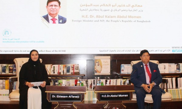 ড. মোমেন এমিরেটস সেন্টার ফর স্ট্র্যাটেজিক অ্যান্ড সিকিউরিটি স্টাডিজে আয়োজিত এই অনুষ্ঠানে বৈশ্বিক শান্তি ও বিশ্ব নিরাপত্তার বিষয়ে বঙ্গবন্ধু শেখ মুজিবুর রহমানের দর্শন তুলে ধরেন।