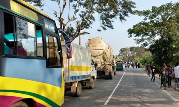 সড়ক অবরোধ করলে সড়কের দুই পাশে শত শত যানবাহন আটকা পড়ে।