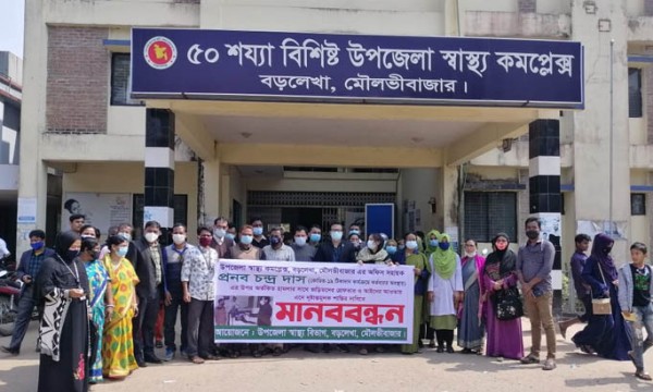 মানববন্ধনে বক্তব্য দেন হাসপাতালের আবাসিক মেডিকেল অফিসার ডা. শুভ্রাংশু শেখর দে, ডা. শারমিন আক্তার, সিনিয়র স্টাফ নার্স প্রতিভা রানী দে, এমটিইপিআই শৈলেশ চন্দ্র নাথ, স্বাস্থ্য সহকারী মাসুক আহমেদ, গীতা রানী দাস, সিএইচসিপি বিনিত দাস প্রমুখ।