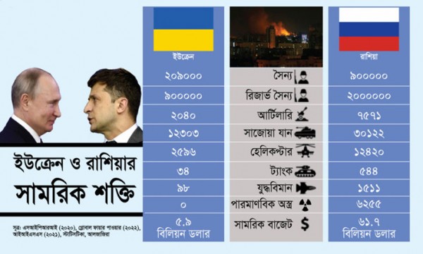 ইউক্রেন ও রাশিয়ার সামরিক শক্তি। ছবিঃ ডেইলি স্টার