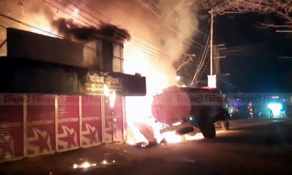 দক্ষিণ সুরমা থানার ভারপ্রাপ্ত কর্মকর্তা (ওসি) কামরুল হাসান তালুকদার বলেন, ‘আগুন নিয়ন্ত্রণে এসেছে। তাৎক্ষণিকভাবে অগ্নিকাণ্ডের কারণ ও এতে ক্ষয়ক্ষতির পরিমাণ জানা যায়নি। বিস্তারিত জানতে একটু সময় লাগবে।’