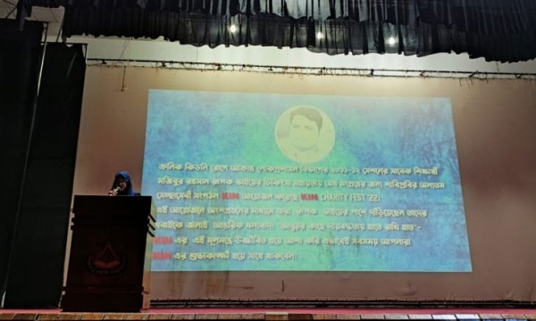শাহজালাল বিজ্ঞান ও প্রযুক্তি বিশ্ববিদ্যালয়ের লোক প্রশাসন বিভাগের সাবেক শিক্ষার্থী মজিবুর রহমান রুপকের চিকিৎসার্থে বিশ্ববিদ্যালয়ের অন্যতম স্বেচ্ছাসেবী সংগঠন ‘কিন’র উদ্যোগে ‘KIN Charity Fest'22’ এর অংশ হিসেবে ‘কিন চ্যারিটি মুভি ফেস্ট’র উদ্বোধন করা হয়েছে।