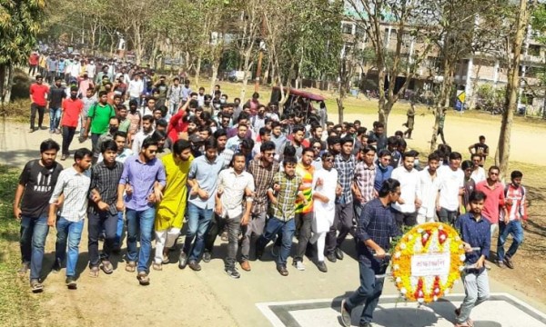 এরপর জাতির জনক বঙ্গবন্ধু শেখ মুজিবুর রহমানের প্রতিকৃতিতে ফুল দিয়ে শ্রদ্ধা নিবেদন করেন ছাত্রলীগের সর্বস্তরের নেতাকর্মীরা।