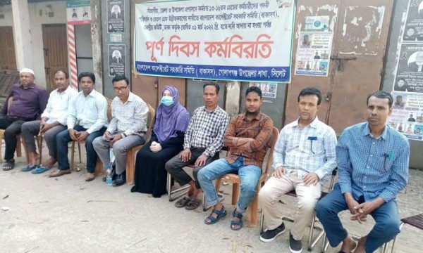 বৃহস্পতিবার (১০ মার্চ) কেন্দ্রীয় কর্মসূচির অংশ হিসেবে বাংলাদেশ কালেক্টরেট সহকারী সমিতি গোলাপগঞ্জ উপজেলা শাখা অষ্টম দিনের মতো পূর্ণদিবস কর্মবিরতি পালন করে। কর্মচারীদের কর্মবিরতি চলাকালে চরম ভোগান্তিতে পড়ে উপজেলা প্রশাসন কার্যালয়ে বিভিন্ন কাজে আসা সাধারণ মানুষ। তারা কাজ করাতে না পেরে ফিরে যান।