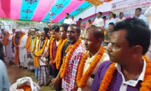 এসময় প্রধান অতিথি এডভোকেট নাসির উদ্দিন খান সহ অতিথিরা তাদের ফুল দিয়ে বরণ করে নেন।
