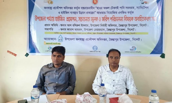 মঙ্গলবার (২৯ মার্চ) সকাল ১১টায় উপজেলা পরিষদের সভাকক্ষে জনস্বাস্থ্য প্রকৌশল অধিদপ্তরের আয়োজনে জৈন্তাপুর উপজেলা পরিষদের চেয়ারম্যান কামাল আহমদের সভাপতিত্বে অবহিতকরণ সভায় প্রধান অতিথি হিসাবে বক্তব্য রাখেন জৈন্তাপুর উপজেলা নির্বাহী কর্মকর্তা (ইউএনও) আল বশিরুল ইসলাম।