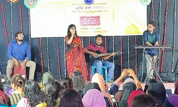 বৃহস্পতিবার (৩১ মার্চ) রাতে প্রথম ছাত্রী হলের সামনে সাংস্কৃতিক অনুষ্ঠানের মাধ্যমে নবীনদের বরণ করে নেওয়া হয়।