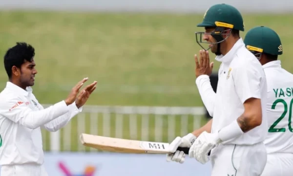 পরের ওভারে কেশব মহারাজকে ফেরান পেসার ইবাদত হোসেন। দক্ষিণ আফ্রিকার শেষ ২ উইকেট ভালোই ভোগাল দলকে। দুই জুটিতেই ছিলেন সাইমন হারমার। তাঁকে আর ফেরানো যায়নি। ৩৮ রানে অপরাজিত থাকলেন হারমার। তাঁর দুই সঙ্গী লিজাড উইলিয়ামস ও ডুয়ান অলিভিয়ের আউট হন সমান ১২ রানে। কাকতালীয়ভাবে দুজন সমান ৩২ বল খেলেন!