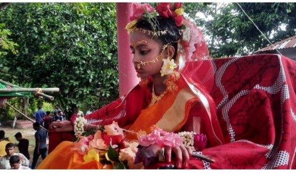 শ্রীমঙ্গলে দেবী দুর্গার রুপে কুমারি কন্যা
