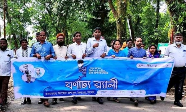 শ্রদ্ধা নিবেদন শেষে উপজেলা পরিষদ প্রাঙ্গন থেকে র্যালি বের হয়ে উপজেলার প্রধান প্রধান সড়ক প্রদক্ষিন করে।