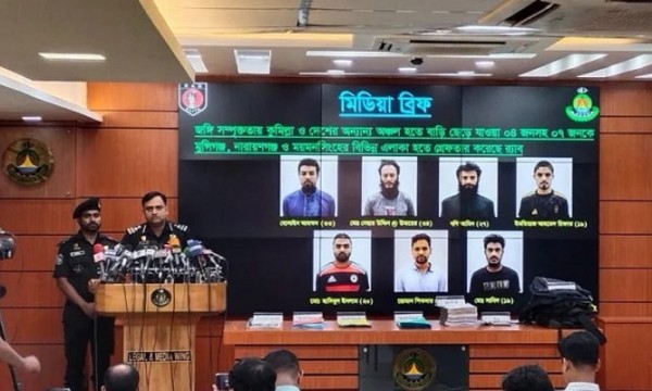 পার্বত্য অঞ্চলের বান্দরবান ও রাঙ্গামাটির বিভিন্ন অঞ্চল থেকে নতুন জঙ্গি সংগঠন ‘জামাতুল আনসার ফিল হিন্দাল শারক্বিয়া’র সাতজন ও পাহাড়ি বিচ্ছিন্নতাবাদী সংগঠনের তিনজনসহ মোট ১০ জনকে গ্রেপ্তার করেছে র্যাব। এসময় বিপুল পরিমাণ অস্ত্র ও গোলাবারুদ উদ্ধার করা হয়।
