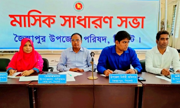 সিলেটের জৈন্তাপুর উপজেলা পরিষদের মাসিক সাধারণ সভা অনুষ্ঠিত। সভায় উপজেলার শ্রীপুর পাথর কোয়ারী হতে পাথর উত্তোলন ও লাল শাপলা বিল সহ ন্যায় ক্ষতিগ্রস্থ রাস্তাঘাট মেরামত সহ বিভিন্ন বিষয় আলোচনা হয়।