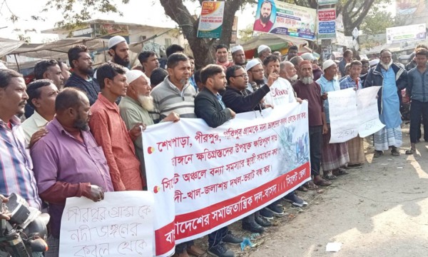 সিলেট নগরের পীরপুর-গরিপুর-শেখপাড়া গ্রামকে নদী ভাঙ্গনের কবল থেকে রক্ষা করা, ভাঙ্গনে ক্ষতিগ্রস্তদের উপযুক্ত ক্ষতিপূরণ ও সিলেট অঞ্চলে বন্যা সমস্যার সমাধানের দাবিতে মানববন্ধন ও বিক্ষোভ সমাবেশ করেছে বাংলাদেশের সমাজতান্ত্রিক দল -বাসদ সিলেট জেলা।