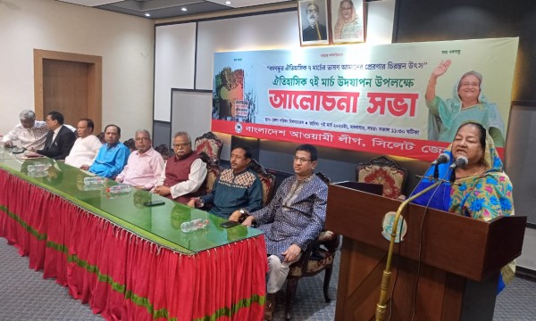 ঐতিহাসিক ৭ই মার্চ উদযাপন উপলক্ষ্যে সিলেট জেলা আওয়ামী লীগের উদ্যোগে জেলা পরিষদ মিলনায়তনে “বঙ্গবন্ধুর ৭ই মার্চের ঐতিহাসিক ভাষণ আমাদের প্রেরণার চিরন্তন উৎস" শীর্ষক আলোচনা সভা অনুষ্ঠিত হয়েছে।