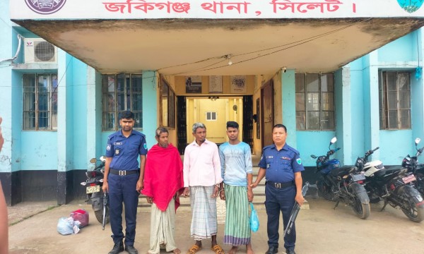 গ্রেফতারকৃতরা হলেন, জকিগঞ্জ উপজেলার দক্ষিণ খলাছড়া গ্রামে ইউসুফ আলীর ছেলে আব্দুল মালিক (৫৭), আব্দুল খালিক (৫৫) ও আব্দুল মালিকের ছেলে আব্দুল্লাহ আল মামুন (২২)।