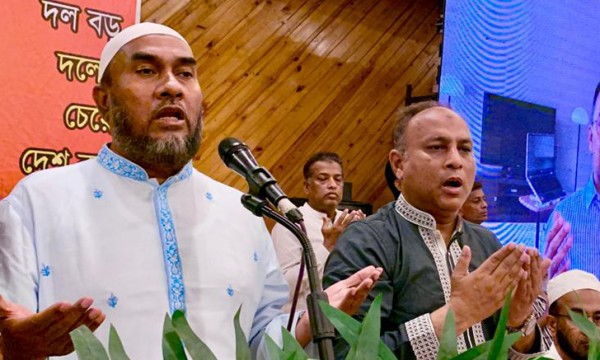 ইফতারপূর্ব রাষ্ট্রপতি জিয়াউর রহমাব ও আরাফাত রহমান খুকুর আত্মার মাগফেরাত, বিএনপির চেয়ারপারসন বেগম খালেদা জিয়া ও ভারপ্রাপ্ত চেয়ারম্যান তারেক রহমানের সুস্থতা কামনা এবং চলমান গণতান্ত্রিক আন্দোলনে শহীদদের আত্মার মাগফেরাত কামনা করে মোনাজাত পরিচালনা করেন সিলেট জেলা বিএনপির সভাপতি আব্দুল কাইয়ুম চৌধুরী।