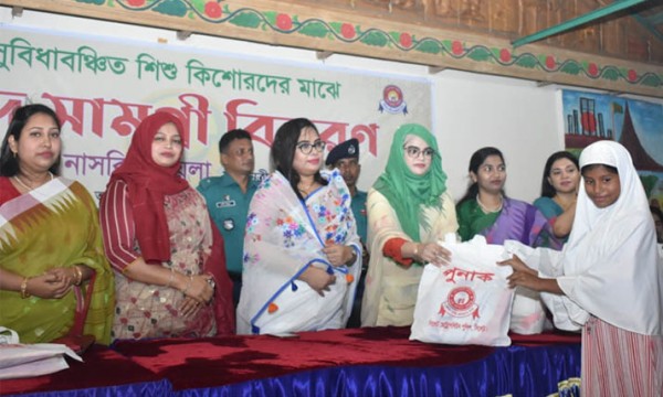 ঈদ আনন্দ ভাগাভাগি করতে সিলেট পুলিশ লাইন্স উচ্চ বিদ্যালয়ের সম্মেলন কক্ষে সুবিধাবঞ্চিত পথশিশুদের মাঝে ঈদ উপহার ও ত্রাণ সামগ্রী বিতরণ করেন সিলেট মেট্রোপলিটন পুলিশের পুনাক সভানেত্রী নাসরিন লায়লা।