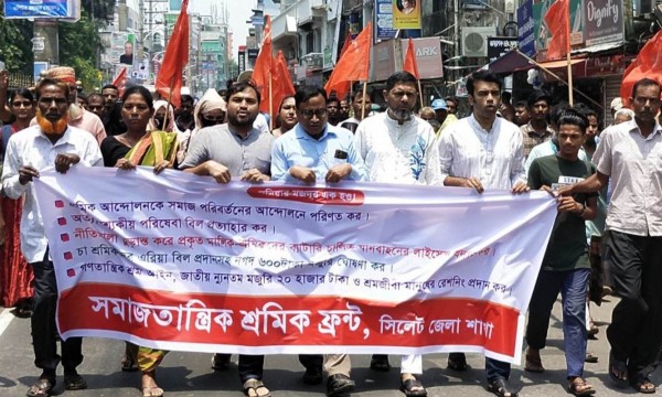 মহান মে দিবস উপলক্ষে সমাজতান্ত্রিক শ্রমিক ফ্রন্ট সিলেট জেলা শাখার উদ্যোগে লাল পতাকা মিছিল ও সমাবেশ অনুষ্ঠিত হয়।