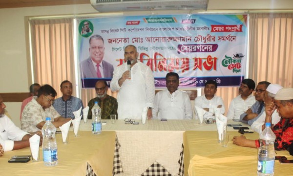 সিলেট বিভাগের বিভিন্ন পৌর মেয়রদের সাথে মতবিনিময় করেছেন সিলেট সিটি কর্পোরেশন নির্বাচনে বাংলাদেশ আওয়ামীলীগ মনোনিত মেয়র পদপ্রার্থী আনোয়ারুজ্জামান চেীধুরী।