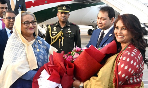 এর আগে প্রধানমন্ত্রী ও তাঁর সফরসঙ্গীদের নিয়ে ফ্লাইটটি আজ বিকেল ৩টা ১৩ মিনিটে ঢাকার হযরত শাহজালাল আন্তর্জাতিক বিমানবন্দর ত্যাগ করে।