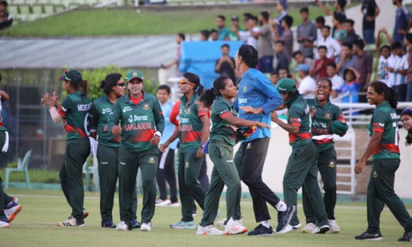 কিন্তু রোমাঞ্চটা যেন জমিয়ে রেখেছিলেন টাইগ্রেস বোলাররা। খেলা শেষ হতে তখনও ১৯ বল বাকি। জয়ের জন্য ভারতের প্রয়োজন মাত্র ১০ রান। ৪৭তম ওভারের শেষ বল। রাবেয়া খানের বলে এলবির ফাঁদে পড়লেন আমানজত কৌর। আবেদনে আম্পায়ার সাড়া দিলে উল্লাসে ফেটে পড়েন নিগার সুলতানারা। তবে জয়টা ভারতের মুঠোতেই ছিল। কিন্তু পরের ওভারে আসল চমক দেখান নাহিদা। দুই বলের ব্যবধানে ফেরান স্নেহ রানা ও দেভিকা বৈদ্যকে। গ্যালারিতে থাকা দর্শকরা উন্মাদনায় ফেটে পড়েন।