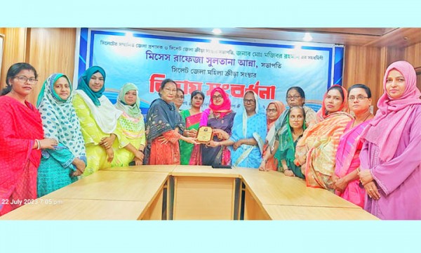 সিলেটের সম্মানিত জেলা প্রশাসক ও সিলেট জেলা ক্রীড়া সংস্থার সভাপতি মো. মজিবর রহমানের বদলিজনিত কারণে সিলেট জেলা মহিলা ক্রীড়া সংস্থা উক্ত সংস্থার সভাপতি রাফেজা সুলতানা আন্নাকে বিদায় সংবর্ধনা দিয়েছে।